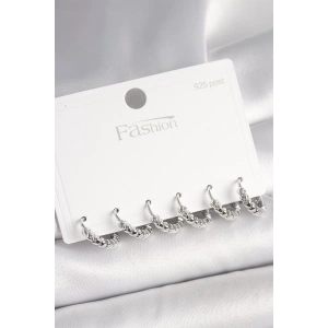 925 Ayar Gümüş Çivi Pirinç Gümüş Renk Sarmal Halka Model Kadın Küpe Seti