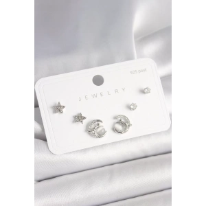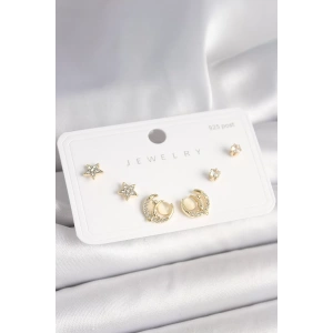 925 Ayar Gümüş Çivi Zirkon Taşlı Hilal Yıldız Model Kadın Küpe Seti