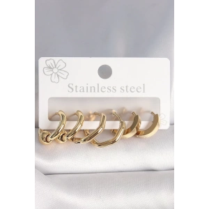 316L Çelik Gold Renk Altıgen Halka Model Kadın Küpe Seti
