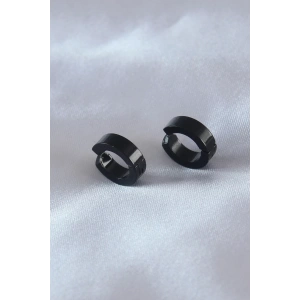 Çelik Siyah Renk Sıkıştırmalı Erkek Küpe