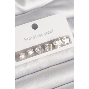 316L Çelik Gümüş Renk Kare Zirkon Taşlı Kadın Küpe Seti