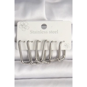 316L Çelik Gümüş Renk Kare Model Kadın Küpe Seti