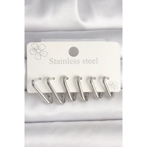 316L Çelik Gümüş Renk Üçgen Model Kadın Küpe Seti