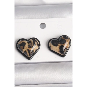 Pirinç Siyah Renk Leopar Desen 3D Kalp Model Kadın Küpe