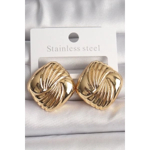 Pirinç Gold Renk İşlemeli Kare Model Kadın Küpe