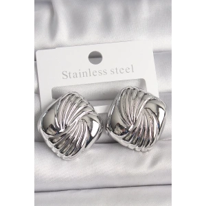 316L Çelik Gümüş Renk Oval Çizgili Plaka Küpe