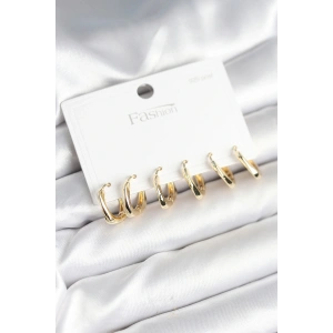 Gold Renk Pirinç Halka Model 925 Ayar Gümüş Çivili Kadın Küpe Seti
