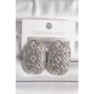 Pirinç Gümüş Renk Motif İşlemeli Kadın Küpe