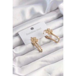 316L Çelik Altın Renk İtalyan Zincirli Yonca Model Halka Küpe