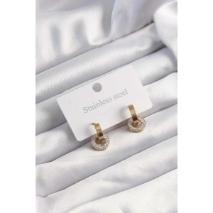 316L Çelik Gold Renk Zirkon Taşlı Halka Model Kadın Küpe