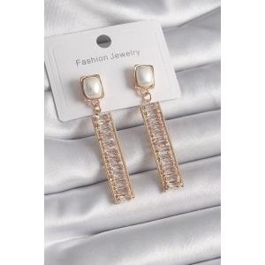 Pirinç Gold Renk Kare İnci Zirkon Taşlı Su Yolu Model Kadın Küpe