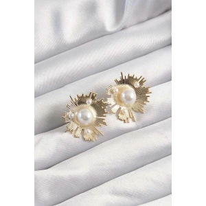 Pirinç Gold Renk Zirkon Taşlı Parlayan İnci Taneleri Küpe