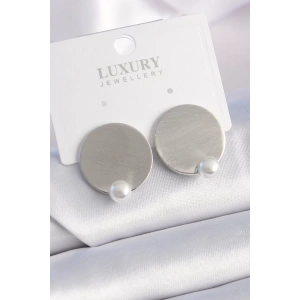 Pirinç Gümüş Renk Plaka Model İnci Detay Kadın Küpe