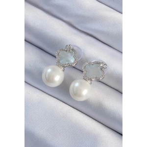 Pirinç Gümüş Renk Zirkon Taş Kaplama İnci Tasarımlı Kadın Küpe