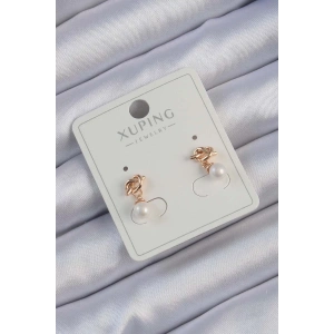 Xuping Rose Renk Zirkon Taşlı İncili Minimal Fiyonk Küpe