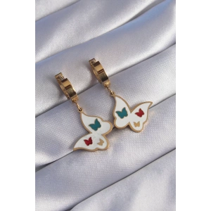 316L Çelik Gold Renk Renkli Mineli Kelebek Küpe
