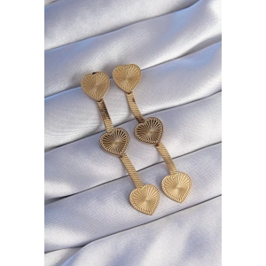 316L Çelik Gold Renk Uzun İtalyan Zincir Detaylı Kalp Küpe