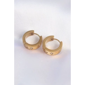 316L Çelik Gold Renk Zirkon Taşlı Minimal Model Halka Küpe