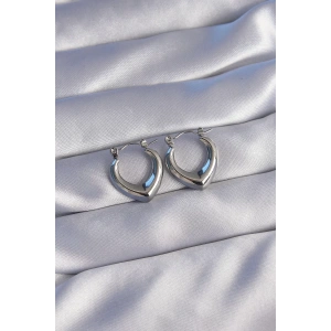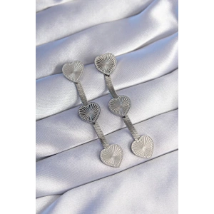 316L Çelik Gümüş Renk Uzun İtalyan Zincir Detaylı Kalp Küpe