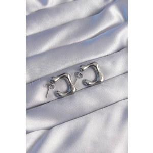 316L Çelik Gümüş Renk Kıvrımlı Görünüm Geometrik Model Küpe