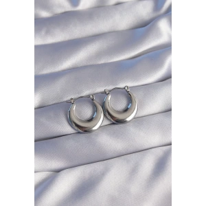 316L Çelik Gümüş Renk İçi Oval Tasarımlı Küpe