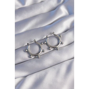 316L Çelik Gümüş Renk Topçuk Tasarımlı Oval Küpe