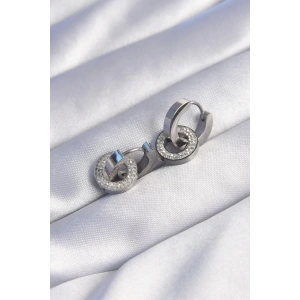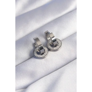 316L Çelik Gümüş Renk Zirkon Taşlı İç İçe Geçmeli Oval Küpe