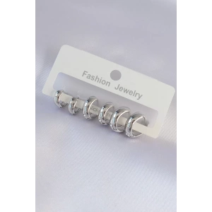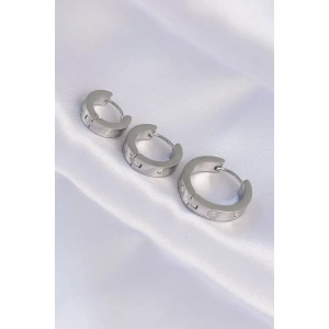 316L Çelik Gümüş Renk Zirkon Taşlı Model 3lü Halka Küpe