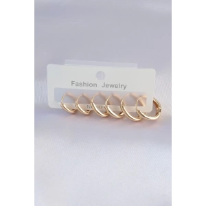 316L Çelik Gold Renk Zirkon Taşlı Model 3lü Halka Küpe