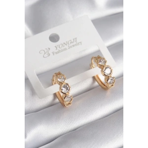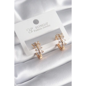 Pirinç Gold Renk Zirkon Taşlı Kadın Küpe