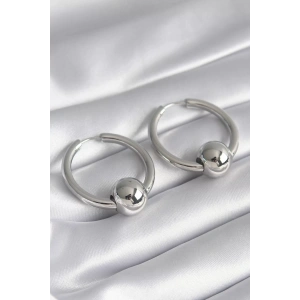 Pirinç Gümüş Renk Halka Top Model Kadın Küpe