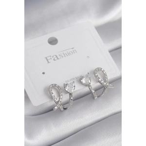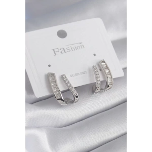 Pirinç Gümüş Renk Zirkon Taşlı Çatal Model Kadın Küpe