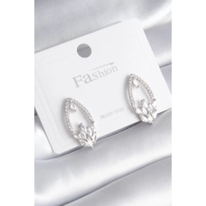 Pirinç Gümüş Renk Zirkon Taşlı Çiçek Model Sallantı Detay Kadın Küpe