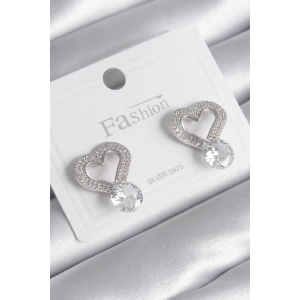 Pirinç Gümüş Renk Zirkon Taşlı Kalp Model Kadın Küpe