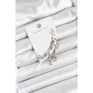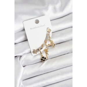Pirinç Zirkon Taşlı İstiridye Balina Ve Yıldız Gold Renk 6'lı Küpe Set