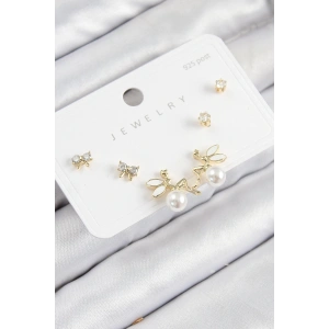 Pirinç Zirkon Taşlı Sallantılı Ve İncili Gold Renk 6'lı Küpe Set