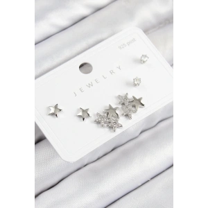 Pirinç Zirkon Taşlı Yıldız Model Gümüş Renk 925 Ayar Gümüş Çivi Kadın Küpe Set