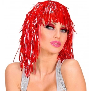 Kırmızı Işıltılı Metalize Parti Peruğu