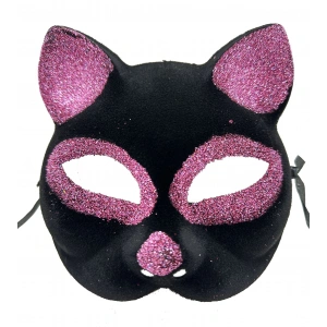 Siyah Renk Pembe Simli Süet Kaplama Kedi Maskesi 18x14 Cm