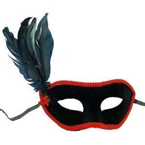 Kırmızı Renk Rugan Kaplama Kırmızı Tüylü Parti Maskesi 18x20 Cm