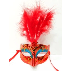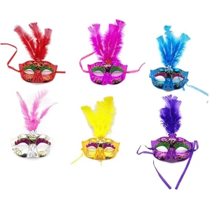 Renkli Tüylü Venedik Parti Maskesi Karışık Renk 12 Adet