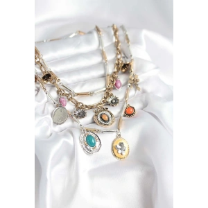Otantik Gümüş Renk Kadın Kolye Kombini