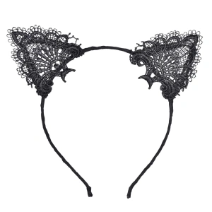 Siyah Kedi Dantel Taç + Eldiven Seti – Parti, Dans Ve Kostüm Kombini