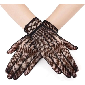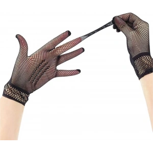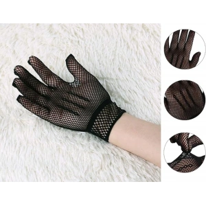 Siyah Renk Likralı File Eldiven Parmaklı Örgü Eldiven Yetişkin Boy