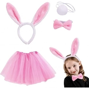 Tavşan Tacı Eteği Papyonu Ve Kuyruk Kostüm Seti Pembe Renk Çocuk Boy