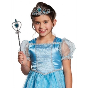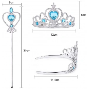 Karlar Ülkesi Elsa Mavi Kalpli Taç Ve Mavi Asa Seti Çocuk Boy