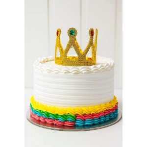 Altın Işıltılı İnce Pasta Tacı Pasta Üstü Taç Plastik Malzeme 8x8 Cm