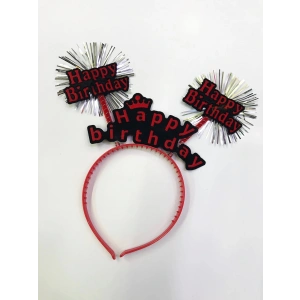 Happy Birthday Yazılı Püsküllü Neon Kırmızı Renk Doğum Günü Tacı 22x19 Cm