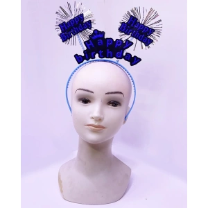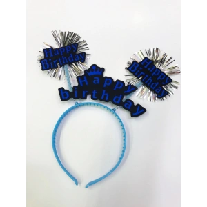 Happy Birthday Yazılı Püsküllü Neon Mavi Renk Doğum Günü Tacı 22x19 Cm