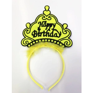 Happy Birthday Neon Sarı Renk Doğum Günü Tacı 24x15 Cm